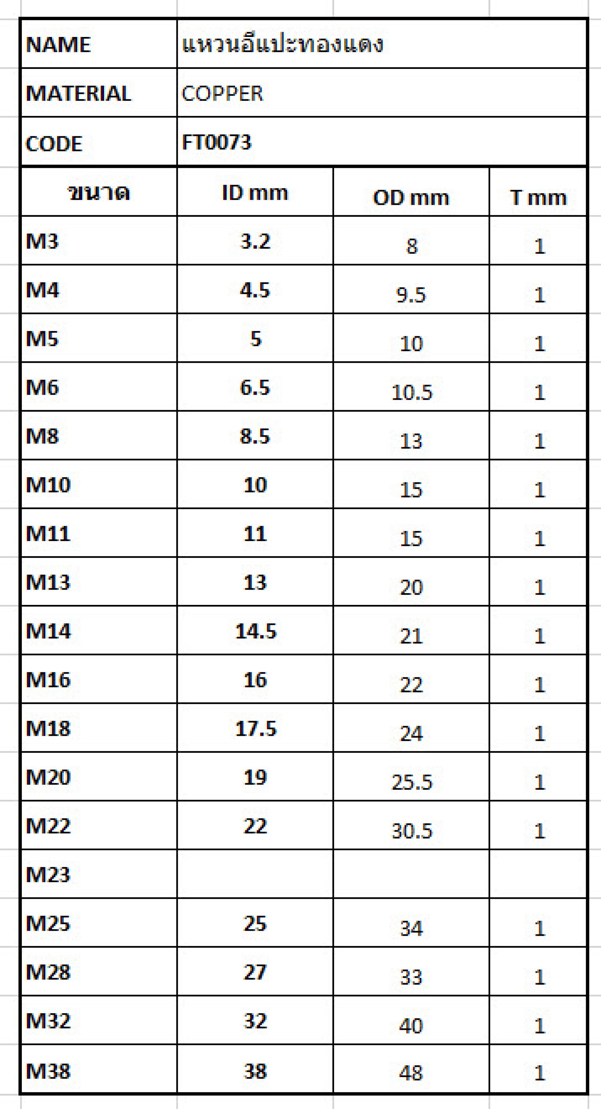 ขนาด M8,M10,M11,M13,M14,M16,M18,M20,M22,M23,M25,M28,M32,M38